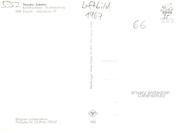 73749039 alte Postkarte Zuelpich Fliegeraufnahme postalisch gelaufen Erhaltung siehe scans [WerneD78] KatCode: 11110005366044