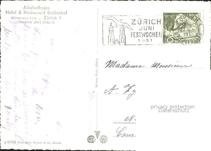 11658220 alte Postkarte Zuerich Alkoholfreies Hotel und Restaurant Seidenhof Sihlstrasse 7/9 postalisch gelaufen Erhaltung siehe scans KatCode: 11470260925666