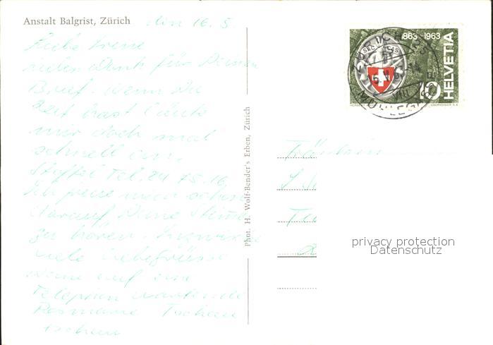 11650413 alte Postkarte Zuerich Anstalt Balgrist postalisch gelaufen Erhaltung siehe scans KatCode: 11470260925666