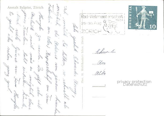 11658069 alte Postkarte Zuerich Anstalt Balgrist postalisch gelaufen Erhaltung siehe scans KatCode: 11470260925666