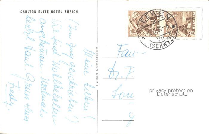 12005827 alte Postkarte Zuerich Carlton Elite Hotel Restaurant postalisch gelaufen Erhaltung siehe scans KatCode: 11470260925666