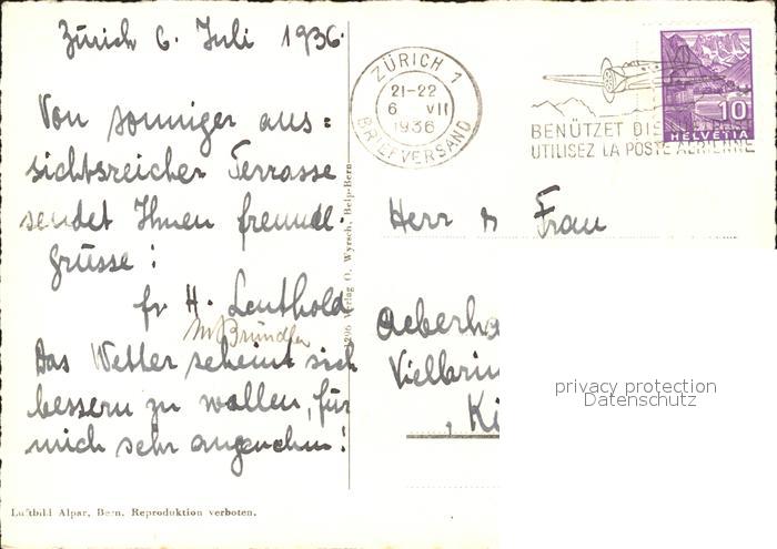 11657947 alte Postkarte Zuerich Fliegeraufnahme Alkoholfreies Kurhaus Rigiblick postalisch gelaufen KatCode: 11470260925666