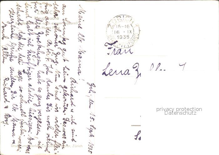 11635754 alte Postkarte Zuerich Hauptwache Kuenstlerkarte Aquarell Hugo Frey Kupfertiefdruck postalisch gelaufen Erhaltung siehe scans KatCode: 11470260925666