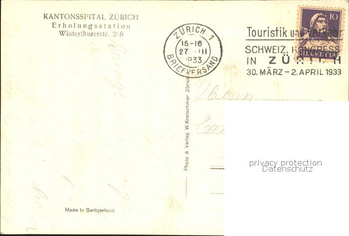 11635878 alte Postkarte Zuerich Kantonsspital Erholungsstation postalisch gelaufen Erhaltung siehe scans KatCode: 11470260925666