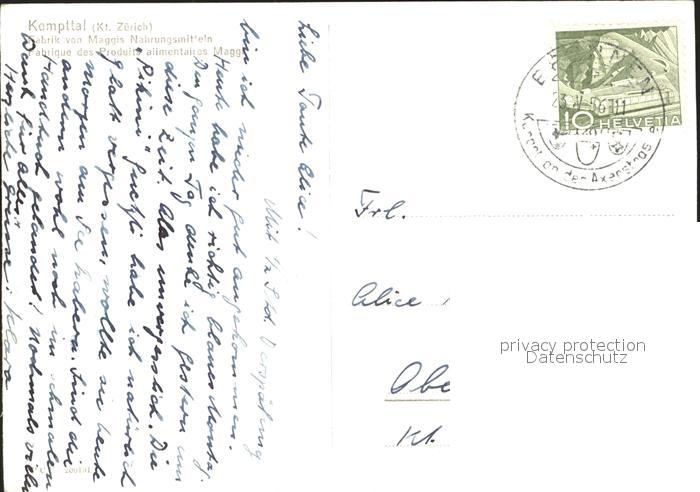 11655708 alte Postkarte Zuerich Kempftal Fabrik von Maggi Nahrungsmitteln postalisch gelaufen Erhaltung siehe scans KatCode: 11470260925666