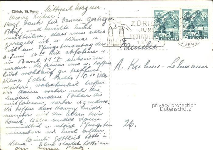 11635659 alte Postkarte Zuerich Kirche St. Peter Kuenstlerkarte postalisch gelaufen Erhaltung siehe scans KatCode: 11470260925666