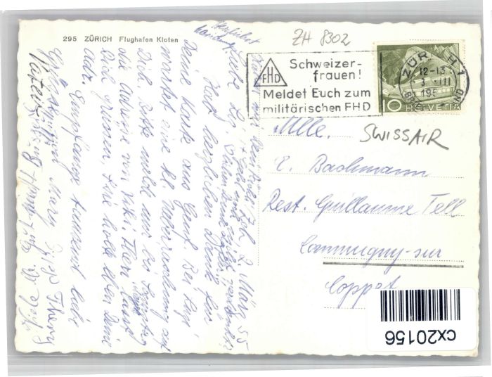 10738382 alte Postkarte Zuerich lughafen Kloten postalisch gelaufen KatCode: 11470260925666