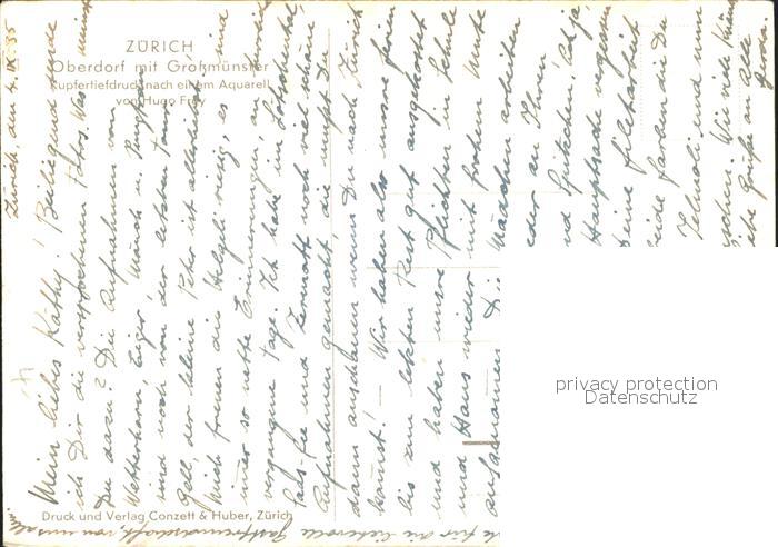 11635756 Zuerich Oberdorf mit Grossmuenster Kuenstlerkarte Aquarell Hugo Frey Kupfertiefdruck postalisch nicht gelaufen Erhaltung siehe scans KatCode: 11470260925666
