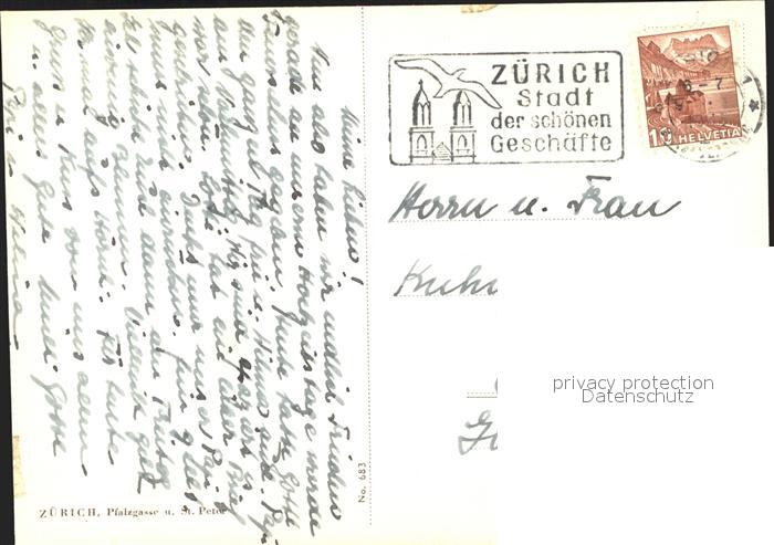 11635662 alte Postkarte Zuerich Pfalzgasse und Kirche St. Peter Kuenstlerkarte postalisch gelaufen Erhaltung siehe scans KatCode: 11470260925666
