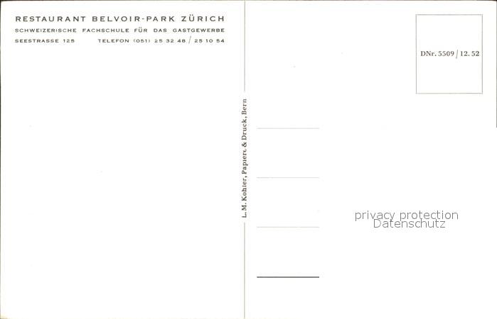 12007697 Zuerich Restaurant Belvoir Park postalisch nicht gelaufen Erhaltung siehe scans KatCode: 11470260925666
