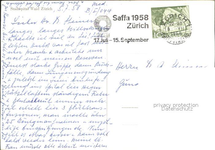 11641380 alte Postkarte Zuerich Stadtspital Waid Fliegeraufnahme postalisch gelaufen KatCode: 11470260925666