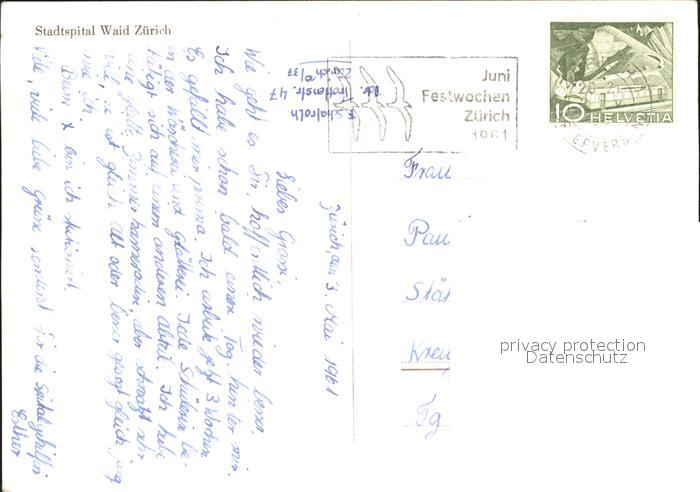 11650634 alte Postkarte Zuerich Stadtspital Waid Fliegeraufnahme postalisch gelaufen Erhaltung siehe scans KatCode: 11470260925666