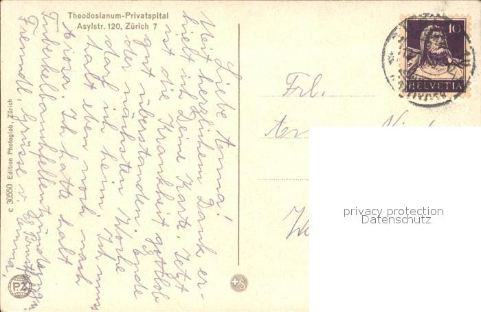 12007693 alte Postkarte Zuerich Theodosianum Parkseite Klinik Sanatorium postalisch gelaufen Erhaltung siehe scans KatCode: 11470260925666