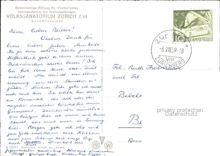 11649875 alte Postkarte Zuerich Volkssanatorium postalisch gelaufen Erhaltung siehe scans KatCode: 11470260925666