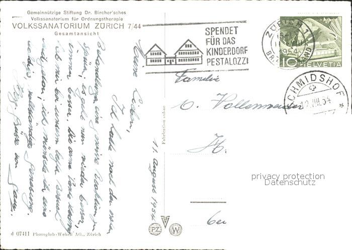 11655659 alte Postkarte Zuerich Volkssanatorium Zuerich postalisch gelaufen Erhaltung siehe scans KatCode: 11470260925666