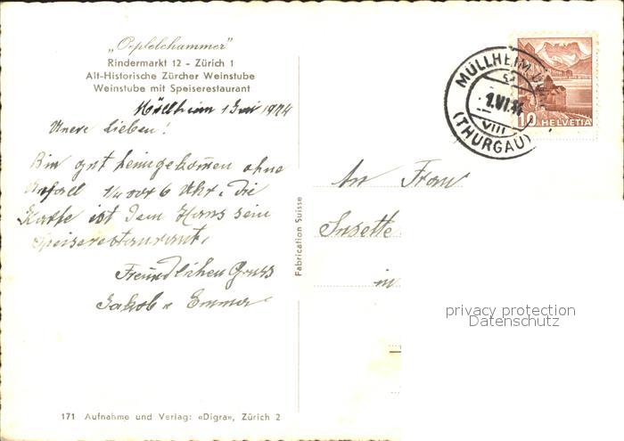11650635 alte Postkarte Zuerich Weinstube Oepfelchammer postalisch gelaufen KatCode: 11470260925666