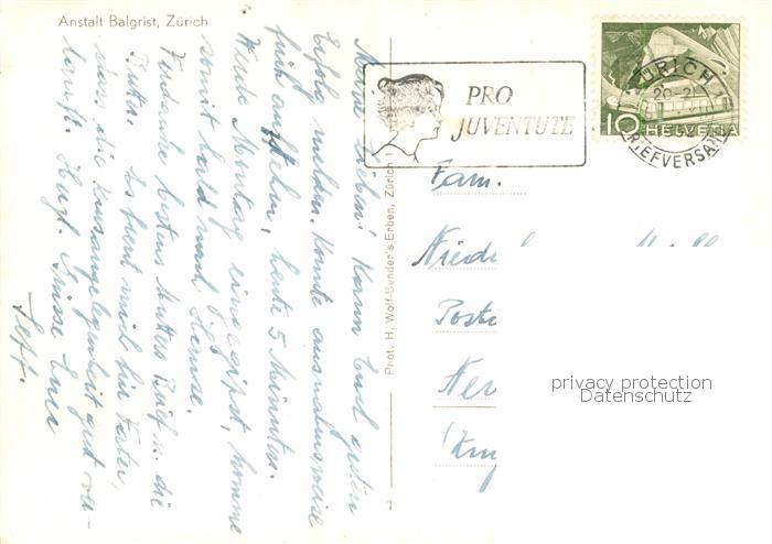 13853452 alte Postkarte Zuerich ZH Anstalt Balgrist postalisch gelaufen Erhaltung siehe scans [FriedD77] KatCode: 11470260925666