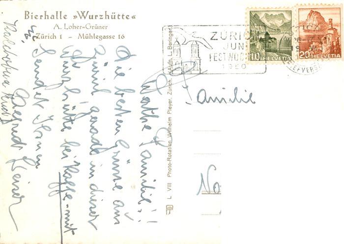 13909230 alte Postkarte Zuerich ZH Bierhalle Wurzhuette postalisch gelaufen Erhaltung siehe scans [FriedD77] KatCode: 11470260925666