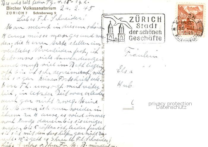 13851657 alte Postkarte Zuerich ZH Bircher Volkssanatorium postalisch gelaufen Erhaltung siehe scans [FriedD77] KatCode: 11470260925666