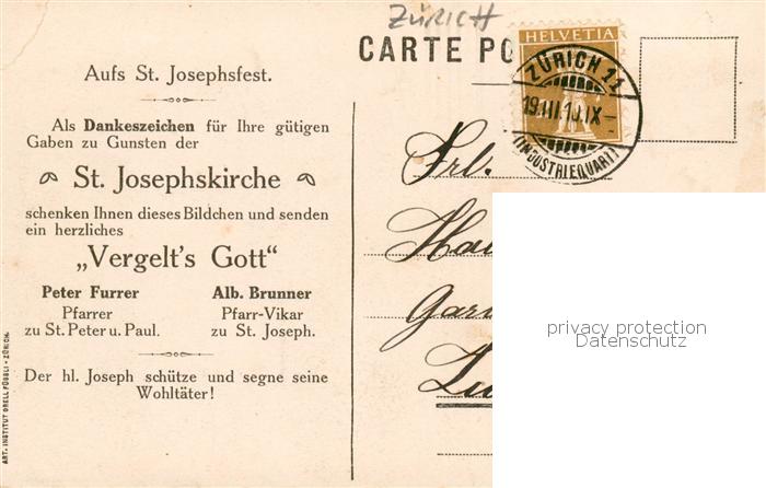 13794471 alte Postkarte Zuerich ZH Chor d. St. Josephskapelle postalisch gelaufen Erhaltung siehe scans [LiesaD40] KatCode: 11470260925666