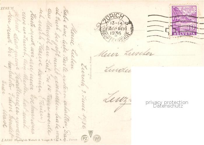 13822685 alte Postkarte Zuerich ZH Fliegeraufnahme postalisch gelaufen Erhaltung siehe scans [FriedD77] KatCode: 11470260925666