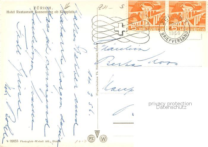 13783684 alte Postkarte Zuerich ZH Fliegeraufnahme Hotel-Restaurant Sonnenberg ob Klusplatz postalisch gelaufen Erhaltung siehe scans [LiesaD40] KatCode: 11470260925666