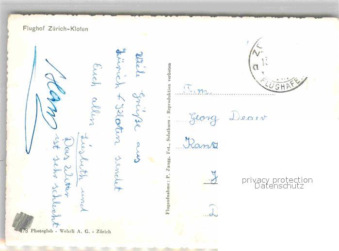 12729286 alte Postkarte Zuerich ZH Flughafen Zuerich Kloten Fliegeraufnahme postalisch gelaufen Erhaltung siehe scans [WerneD78] KatCode: 11470260925666