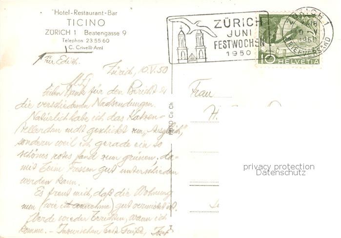 13865123 alte Postkarte Zuerich ZH Hotel Restaurant Bar Ticino postalisch gelaufen Erhaltung siehe scans [FriedD77] KatCode: 11470260925666