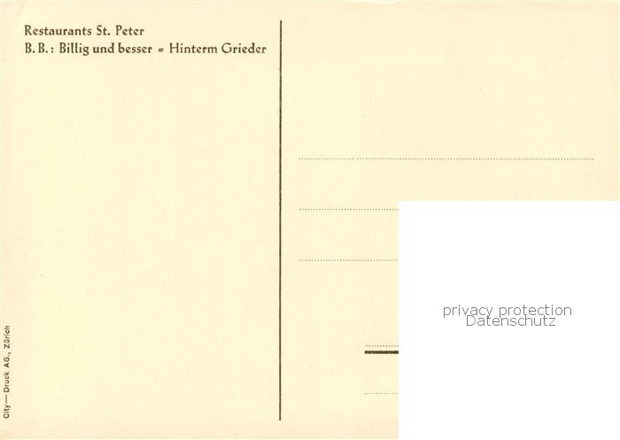 13854774 Zuerich ZH Hotel St Peter und Restaurants Zeichnung postalisch nicht gelaufen Erhaltung siehe scans [WerneD78] KatCode: 11470260925666