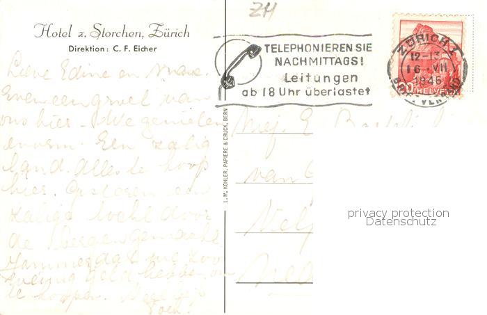 13774399 alte Postkarte Zuerich ZH Hotel zum Storchen postalisch gelaufen Erhaltung siehe scans [FriedD77] KatCode: 11470260925666