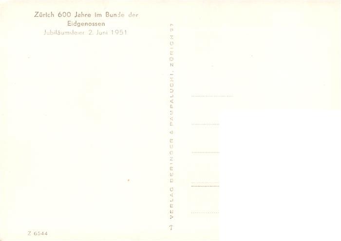 13919546 Zuerich ZH Jubilaeumsfeier postalisch nicht gelaufen Erhaltung siehe scans [WerneD78] KatCode: 11470260925666