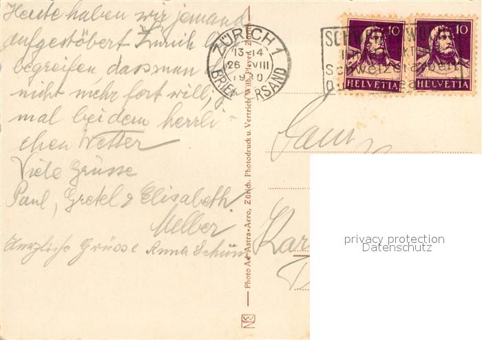 13002837 alte Postkarte Zuerich ZH Limmat Quaibruecke Nationalbank Bauschaenzli Bellevue Fliegeraufnahme postalisch gelaufen Erhaltung siehe scans [FriedD77] KatCode: 11470260925666
