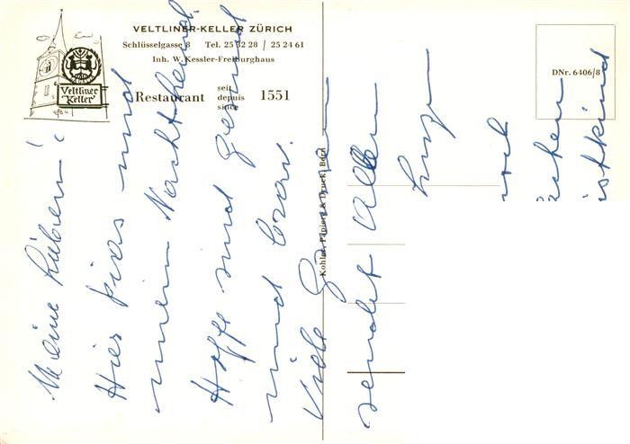 13905311 Zuerich ZH Restaurant Veltliner Keller Gastraum postalisch nicht gelaufen Erhaltung siehe scans [WerneD78] KatCode: 11470260925666