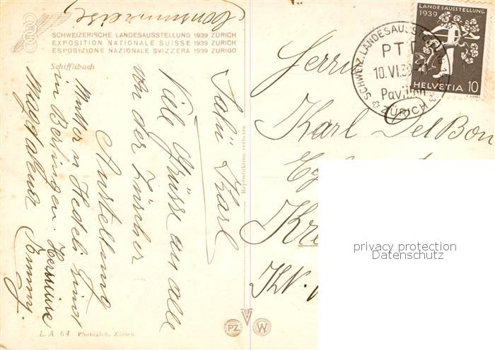 13854107 alte Postkarte Zuerich ZH Schweizer Landesausstellung 1939 Schifflibach postalisch gelaufen Erhaltung siehe scans [WerneD78] KatCode: 11470260925666