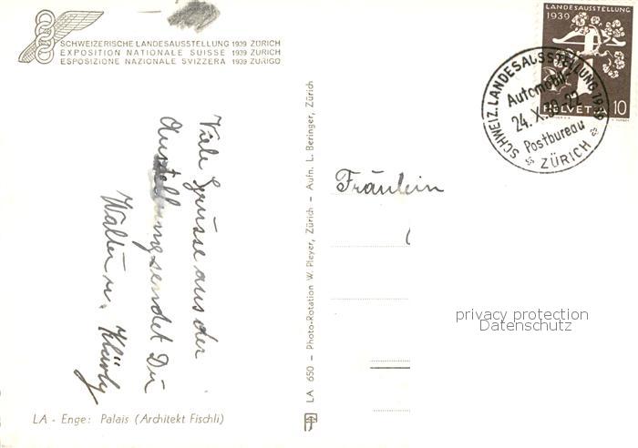 13851661 alte Postkarte Zuerich ZH Schweizerische Landesausstellung Palais Architekt Fischli Flagge postalisch gelaufen Erhaltung siehe scans [FriedD77] KatCode: 11470260925666