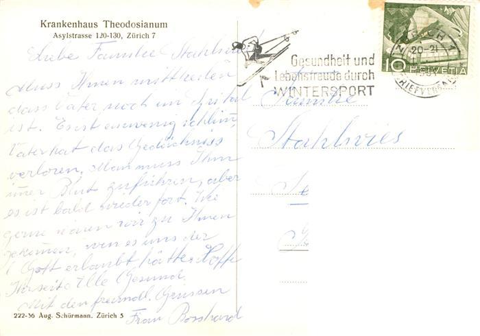13909221 alte Postkarte Zuerich ZH Theodosianum Parkseite Klinik Sanatorium postalisch gelaufen Erhaltung siehe scans [FriedD77] KatCode: 11470260925666