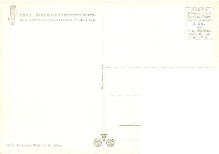 13904888 Zuerich ZH ZueKA Kantonale Landwirtschafts und Gewerbe Ausstellung 1947 postalisch nicht gelaufen Erhaltung siehe scans [WerneD78] KatCode: 11470260925666