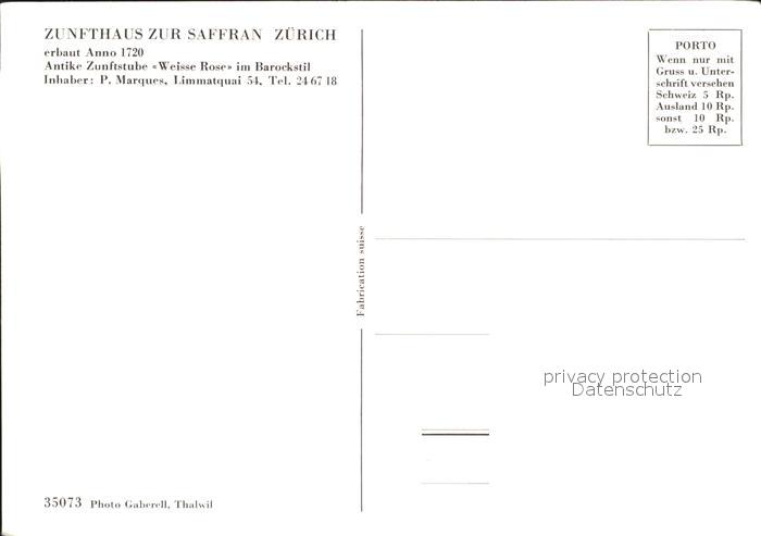 11837389 Zuerich ZH Zunfthaus zur Saffran Antike Zunfstube Weisse Rose postalisch nicht gelaufen KatCode: 11470260925666