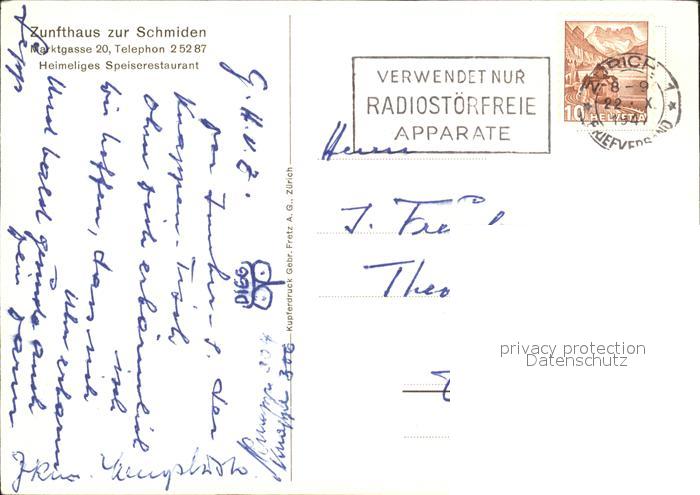 11650457 alte Postkarte Zuerich Zunfthaus zur Schmiden Speiserestaurant postalisch gelaufen KatCode: 11470260925666