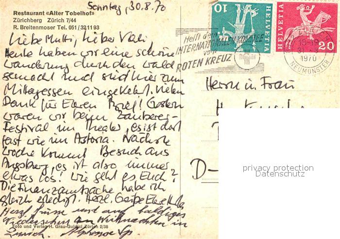 32626978 alte Postkarte Zuerichberg ZH Restaurant Alter Tobelhof postalisch gelaufen Erhaltung siehe scans [AndreD76] KatCode: 11470520525074
