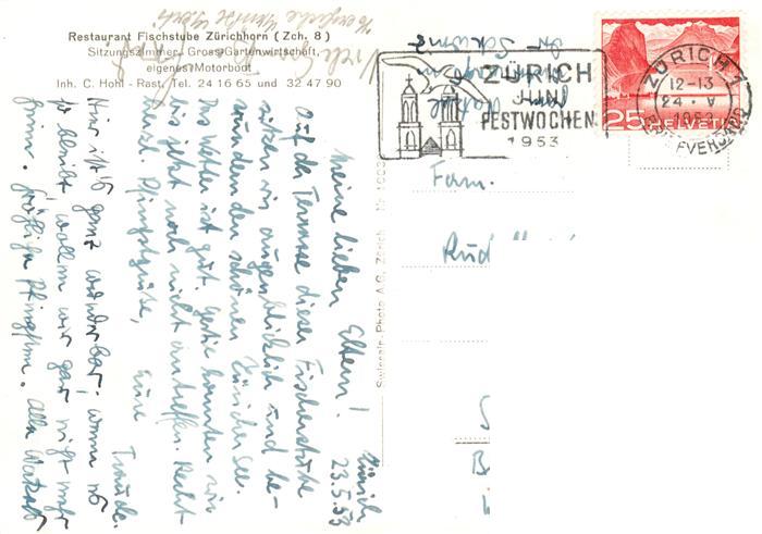 13863833 alte Postkarte Zuerichhorn ZH Restaurant Fischstube am Zuerichsee postalisch gelaufen Fliegeraufnahme Erhaltung siehe scans [FriedD77] KatCode: 11470260925666
