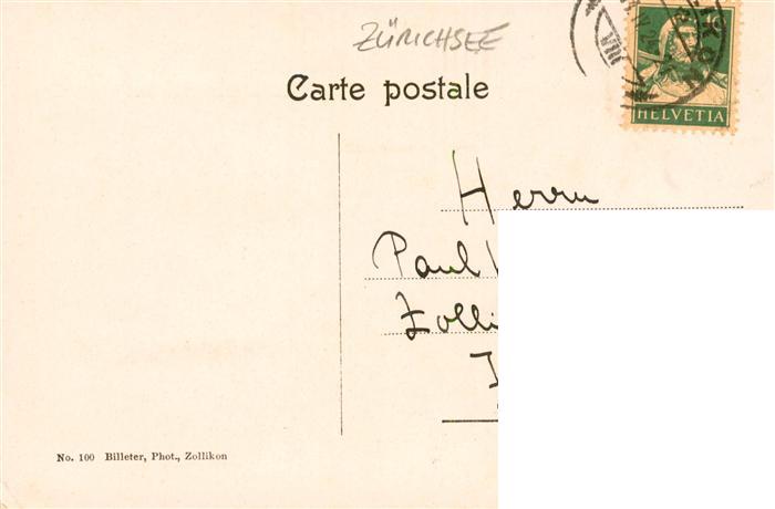 13920350 alte Postkarte Zuerichsee ZH Seepartie mit Segelboot postalisch gelaufen Erhaltung siehe scans [FriedD77] KatCode: 11470260925666
