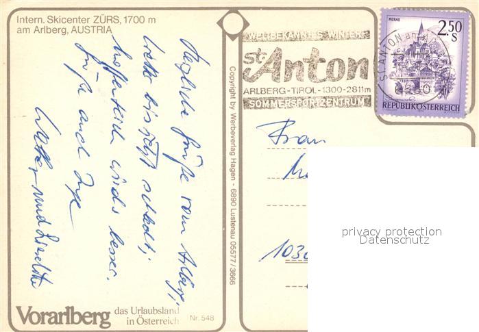 73269234 alte Postkarte Zuers Arlberg Skicenter Seilbahn Winter postalisch gelaufen Erhaltung siehe scans [KathaD81] KatCode: 11390341080113