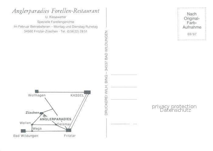72948479 Zueschen Fritzlar Anglerparadies Restaurant postalisch nicht gelaufen Erhaltung siehe scans [KathaD81] KatCode: 11110006634005