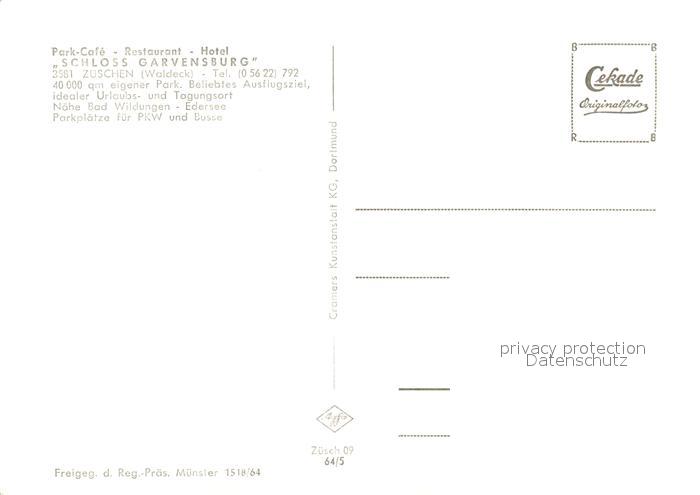 73170307 Zueschen Fritzlar Fliegeraufnahme Park-Cafe Schloss Garvensburg postalisch nicht gelaufen Erhaltung siehe scans [NatalD47] KatCode: 11110006634005
