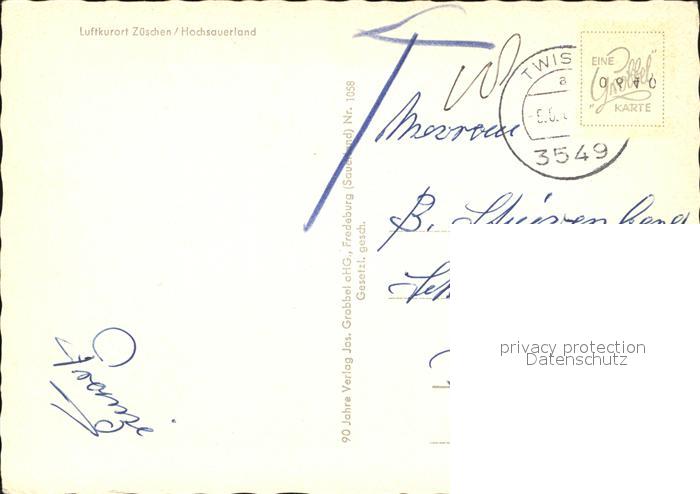 72469932 alte Postkarte Zueschen Sauerland postalisch gelaufen Erhaltung siehe scans KatCode: 11110005958048
