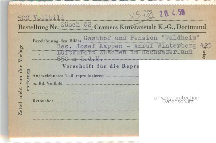 42910468 Zueschen Sauerland Gasthof Pension Waldheim postalisch nicht gelaufen Foto (keine Postkarte) Erhaltung siehe scans [KathaD81] KatCode: 11110005958048