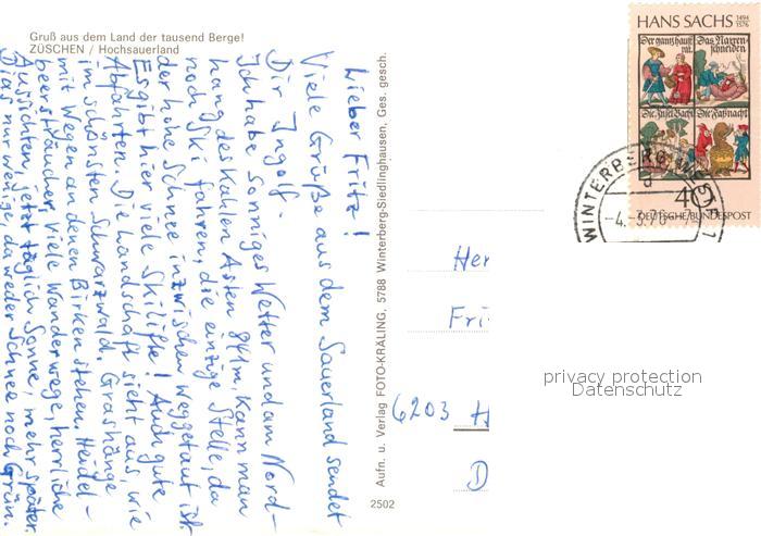 73160824 alte Postkarte Zueschen Sauerland Panorama postalisch gelaufen Erhaltung siehe scans [WerneD78] KatCode: 11110005958048