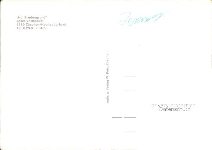 72524339 Zueschen Sauerland Pension Hof Bredengrund am Waldrand postalisch nicht gelaufen Erhaltung siehe scans KatCode: 11110005958048