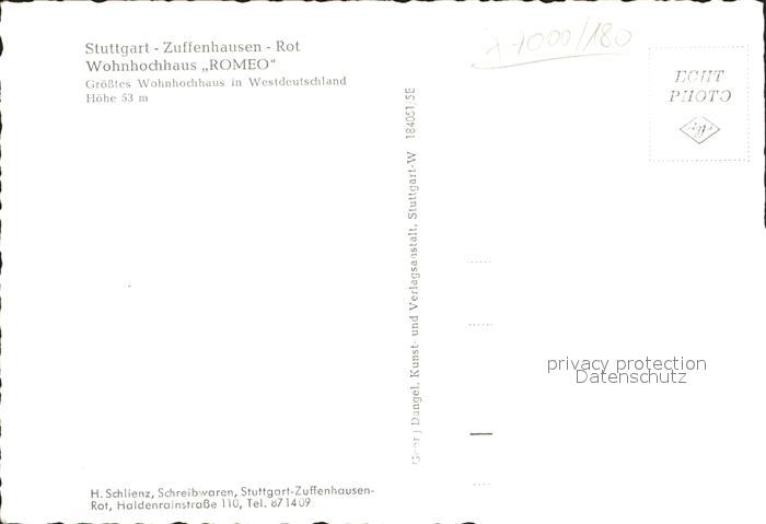 41995830 Zuffenhausen Wohnhochhaus Romeo postalisch nicht gelaufen Erhaltung siehe scans KatCode: 11110008111000